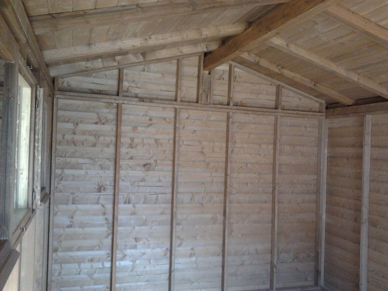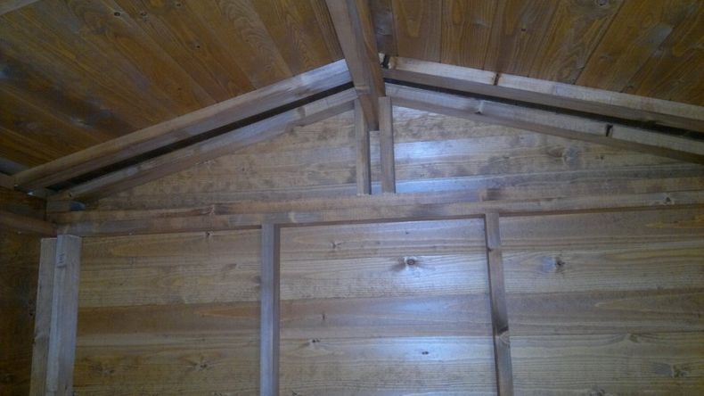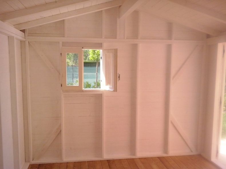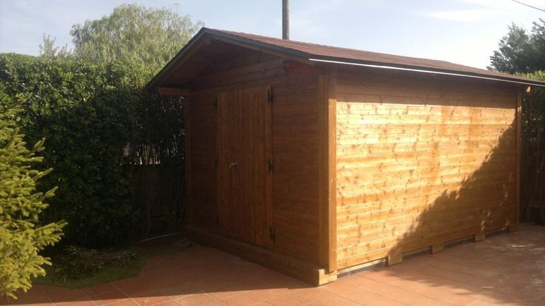 la struttura portante è in travi di pino canadese da cm 12x5, mentre le pareti perimetrali ed il tetto sono rivestiti con pannelli in osb canadese di prima scelta. la struttura è fornita di elementi standard tra cui 1 porta garage in acciaio da cm 245x213, con sistema d'apertura scorrevole su binari in acciaio dotati di cuscinetti, che permettono una facile apertura e chiusura, 1 porta di servizio da cm 86x204 rivestita in acciaio verniciato bianco, 1 finestra a ghigliottina